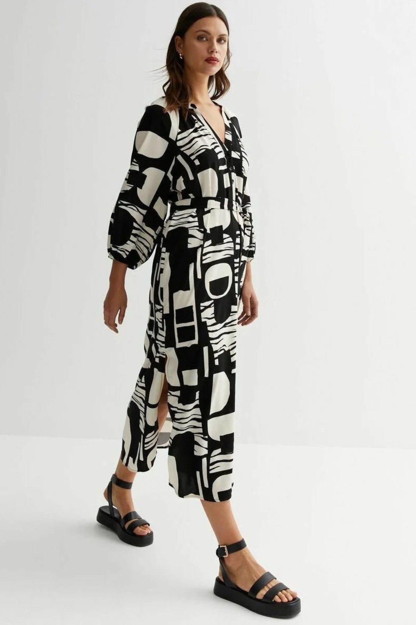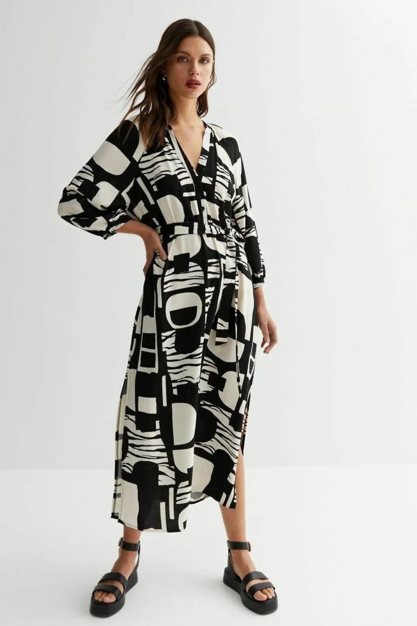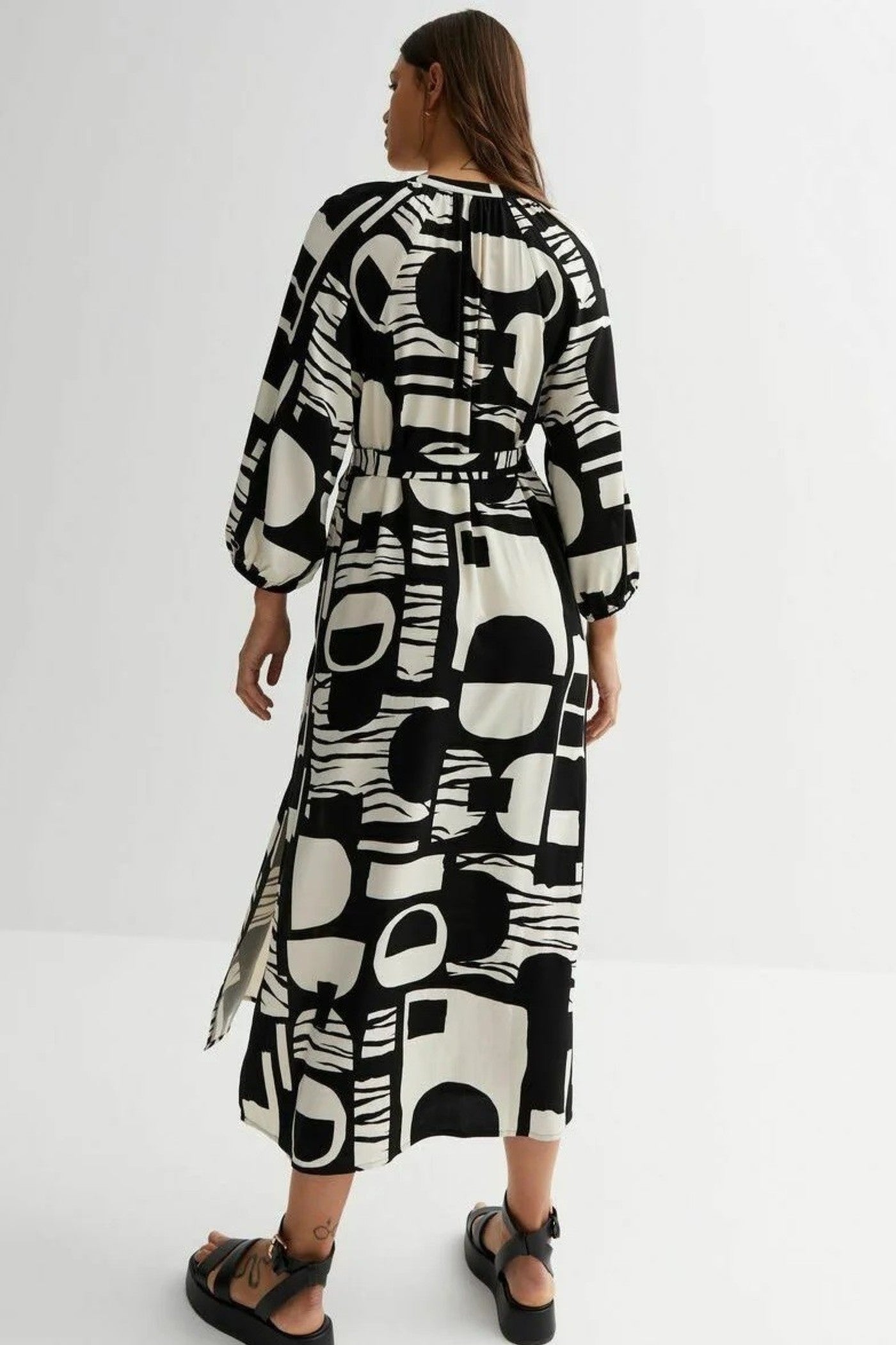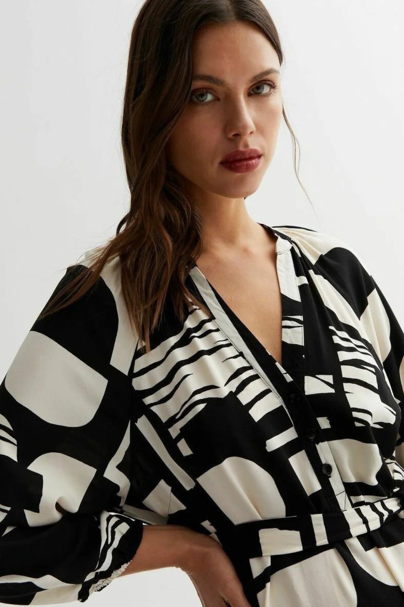 Experience modern elegance with our Modernist Block Print Wrap Dress. Featuring a unique and eye-catching block print design, this dress is perfect for making a statement at any occasion. Its wrap style provides a flattering fit for all body types. Elevate your wardrobe with this must-have dress.